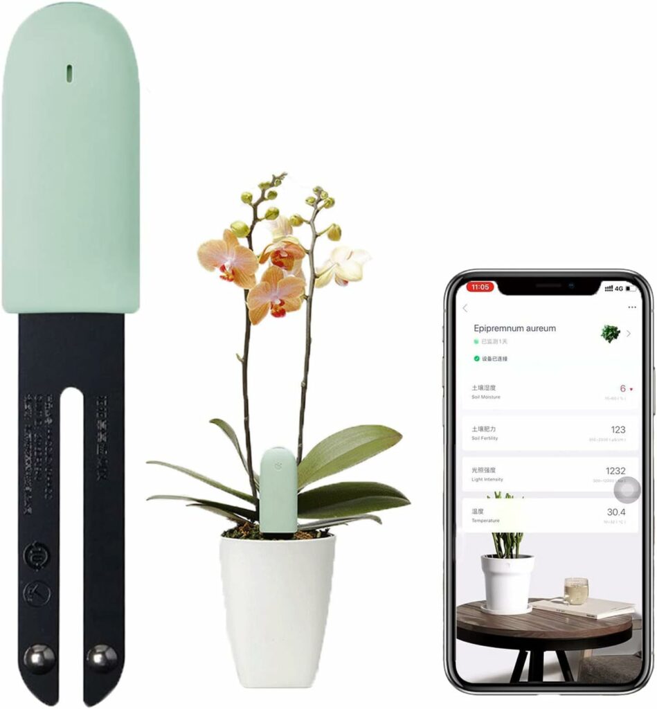 土壌測定計 土壌測定器 4 in 1 土壌テスター 水分 温度 栄養素 照度測定 多機能 土壌水分計 照度計 植物土壌測定器 屋内 屋外兼用でき 家庭菜園 栽培 ガーデン 園芸用品 MiHome対応 Bluetooth (グリーン)