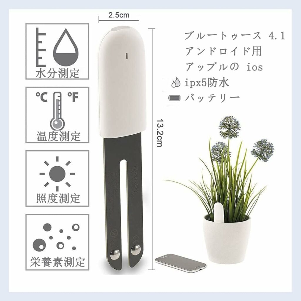 - 【MiHome対応 Bluetooth】この土壌測定器は感温素子を内蔵しており、光と温度を数字化して表示します。MiHome APPとFlower Care APPを対応しています。Bluetooth接続により、盆栽の土壌情報を一目瞭然。アプリには900種類以上の植物保護方法、3000種類以上の植物百科知識が収録されています。IP67防水、CR2032ボタン電池、365日長時間使用できます。