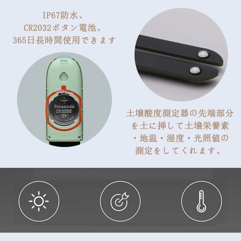 - 【4in1土壌測定器】この土壌測定器は照度、土壌栄養素、土壌水分および温度、この四つの数値を測定できます。園芸の生育管理に最適な土壌測定器です。これ1台で土の成分が大よそ把握可能な便利な製品です。取り扱いが簡単なので初心者でもすぐに使用可能な製品です。