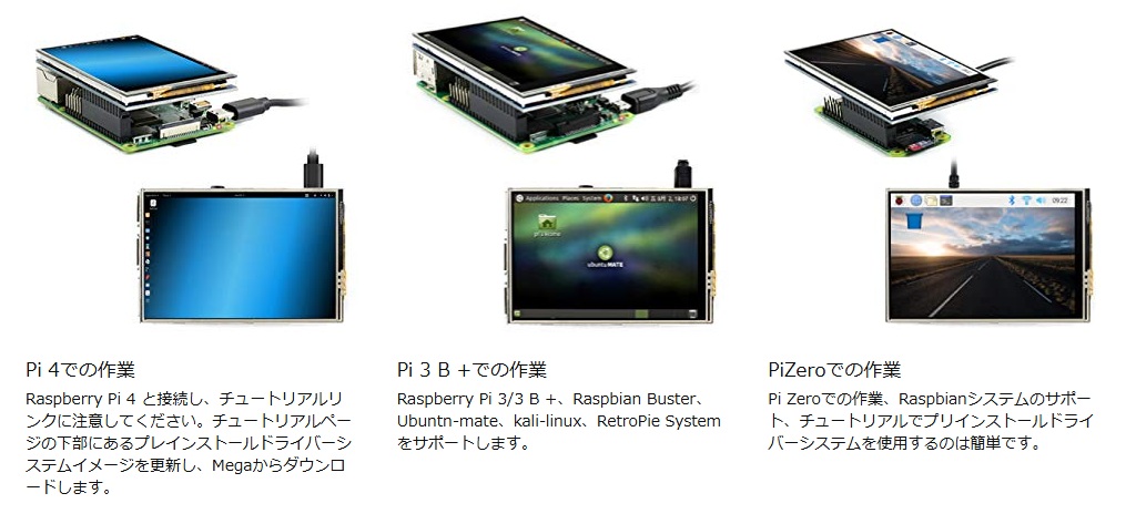 - 画面はまた、Pi 3 B +、Pi 2をサポートしています(Pi4の場合のみ)。