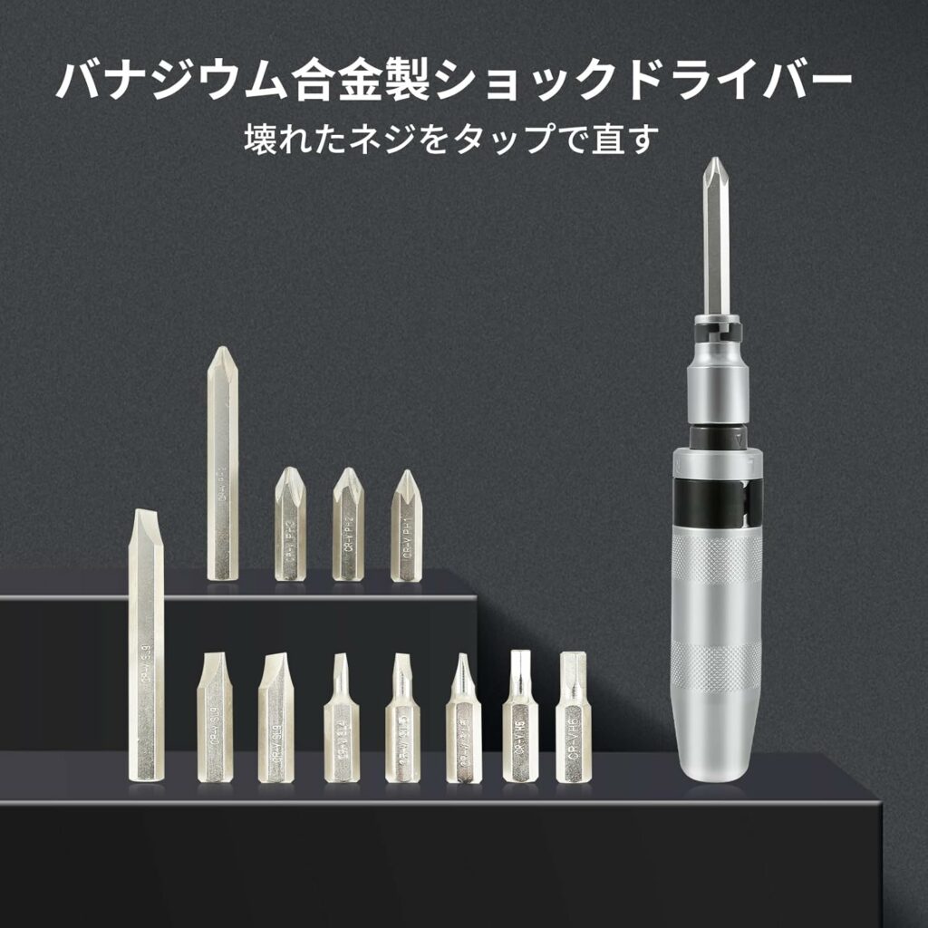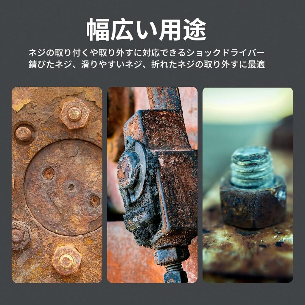 - 【多様な用途】このショックドライバーセットは固定したネジ、錆びたネジ、なめたネジなど取り外しにくいネジを手軽に取り外せます。バイク、車、家用家電などの修理に最適です。