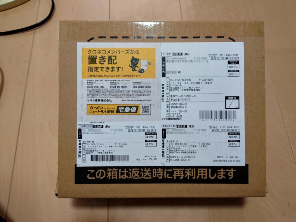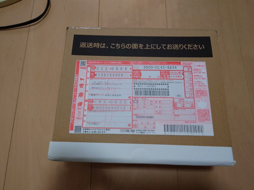 良くできていてダンボールの閉じ方を変えると返送用の着払い用紙になるようになっていました。