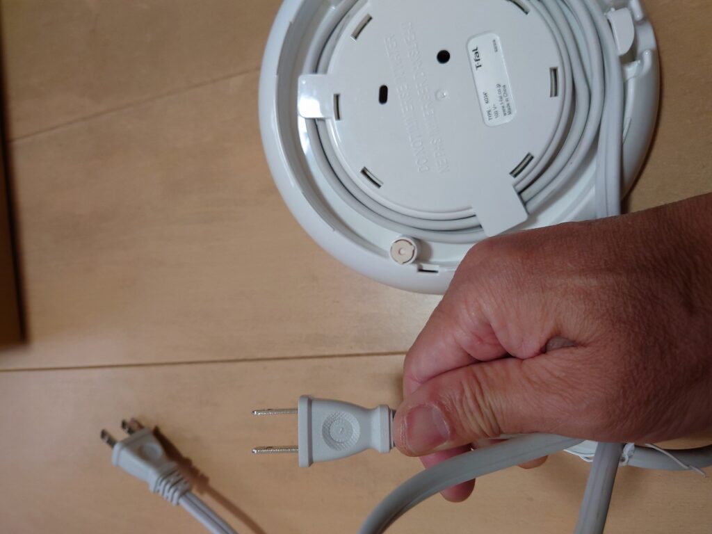 内容は電気ケトルの電源プレートにつながっている電源プラグのリコールらしいのですが、今、使っているリコール品の電気ケトル見ても良くわからないので検証します。