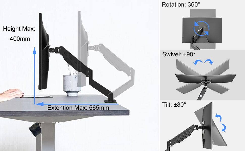 suptek 完全調節可能なガススプリングモニターマウント PC モニター アーム 液晶ディスプレイ アーム ガス圧式 モニタースタンド17 20 22 23 24 26 27 32インチのモニターに対応 17~32インチ対応 省スペース 机上スッキリ 空間活用 最大耐荷重10kg