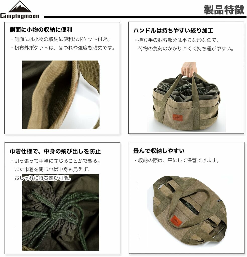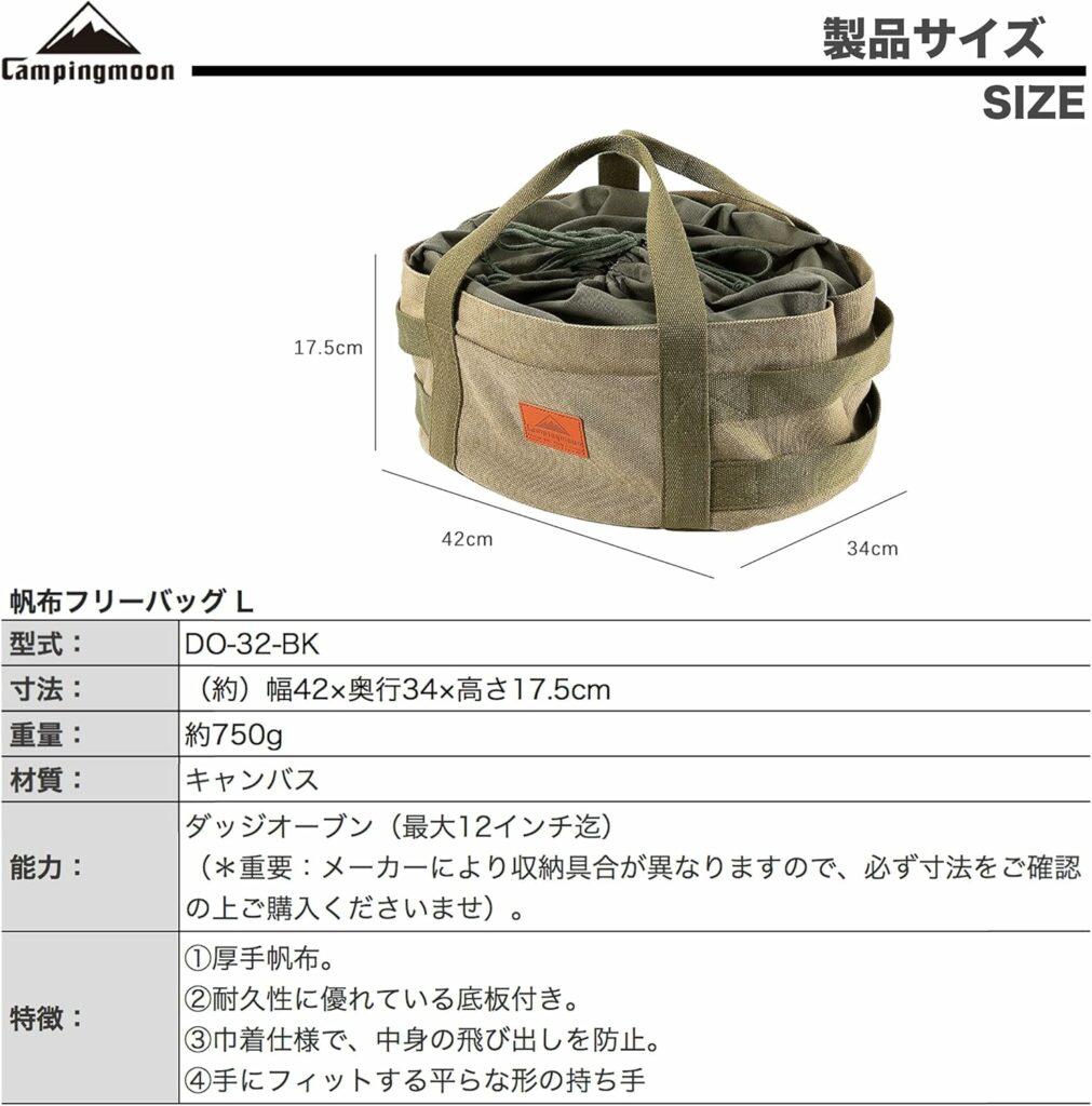キャンピングムーン(CAMPING MOON) 極厚帆布 フリーバッグ L ダッチオーブン ケース 12インチ キャンプ アウトドア 収納バッグ DO-32-BK