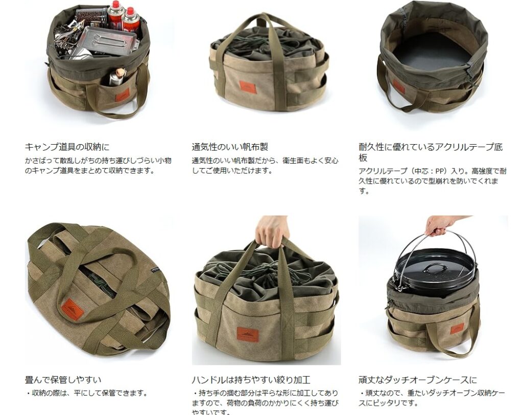 純正の収納バッグはお高いので、ネットの口コミから12インチのこれが上記、ダッチオーブンに合うらしいので購入しました。